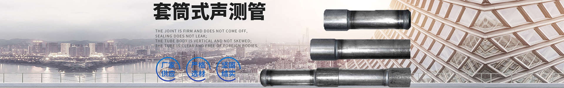 筒式声测管:钢管的一端焊接有套筒,现场进行套焊连接。声测管中比较早期的产品,它的原理很简单,就是在底管上面焊接一个套筒,套筒的外径要比底管大,然后再把顶管插入套筒内,焊接密封。一定程度上减轻了工地现场焊接的工作量,提高了施工效率,同事安全性也得到更多保证,减少作业成本,增加经济效益。